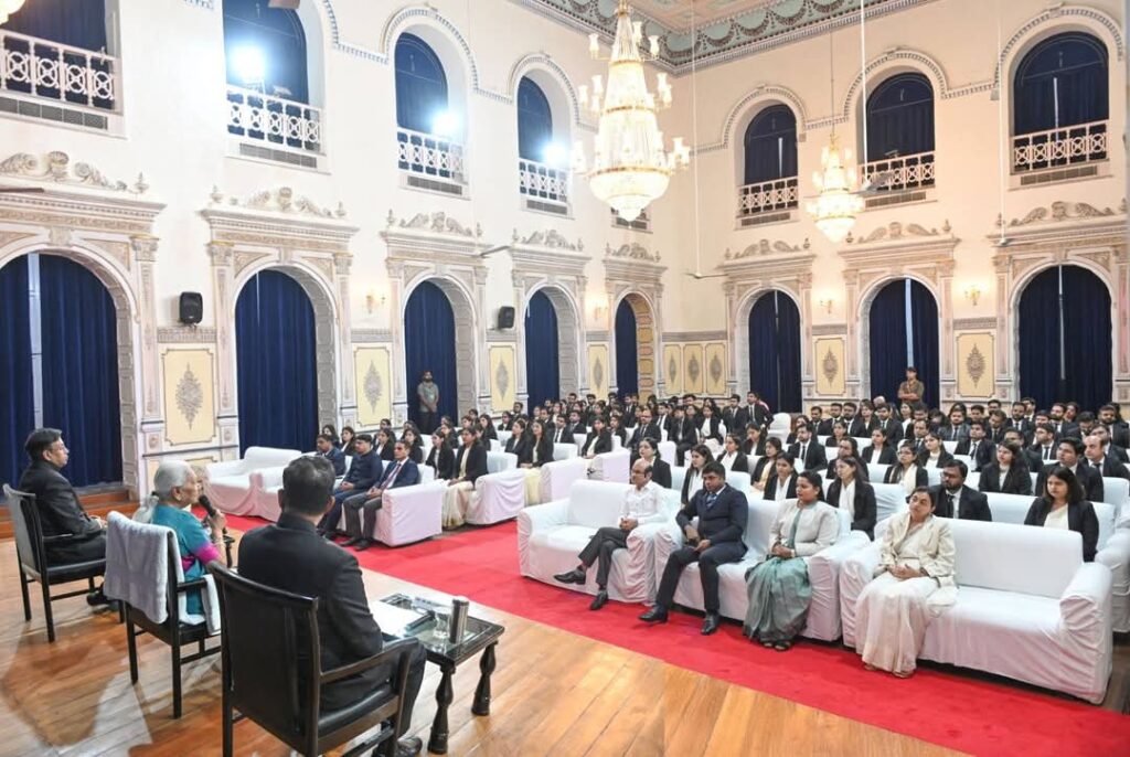 लखनऊ | उत्तर प्रदेश की राज्यपाल आनंदीबेन पटेल से शुक्रवार को उत्तर प्रदेश न्यायिक सेवा 2022 बैच के 111 नव नियुक्त प्रशिक्षु सिविल न्यायाधीश (अवर खंड) और न्यायिक प्रशिक्षण एवं अनुसंधान संस्थान के अधिकारियों ने राजभवन में भेंट की।