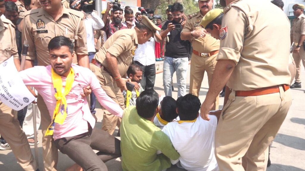 प्रदर्शन के दौरान पुलिस ने प्रदेश उपाध्यक्ष अंशुल यादव, आशीष मौर्य, प्रदेश सचिव अमन सोनी, जिला अध्यक्ष आकाश सिंह सहित कई कार्यकर्ताओं को हिरासत में लेकर इको गार्डन भेज दिया। अन्य गिरफ्तार कार्यकर्ताओं में सूरज, नीरज, विशु यादव, पवन, आशिफ, दानिश और मनीष समेत कई छात्र शामिल रहे।