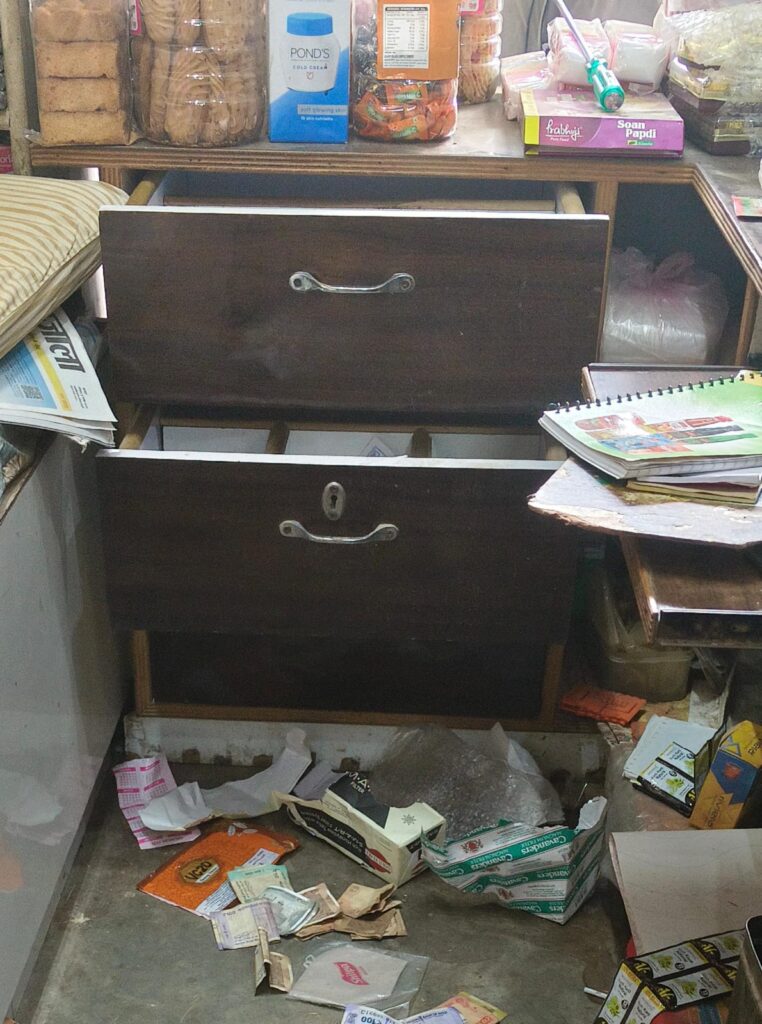 बीती रात करीब 2:45 बजे अज्ञात चोरों ने बांस-बल्ली और औजारों से शटर तोड़कर अंदर घुसते हुए करीब 4–5 लाख रुपये नकद उड़ा लिए।