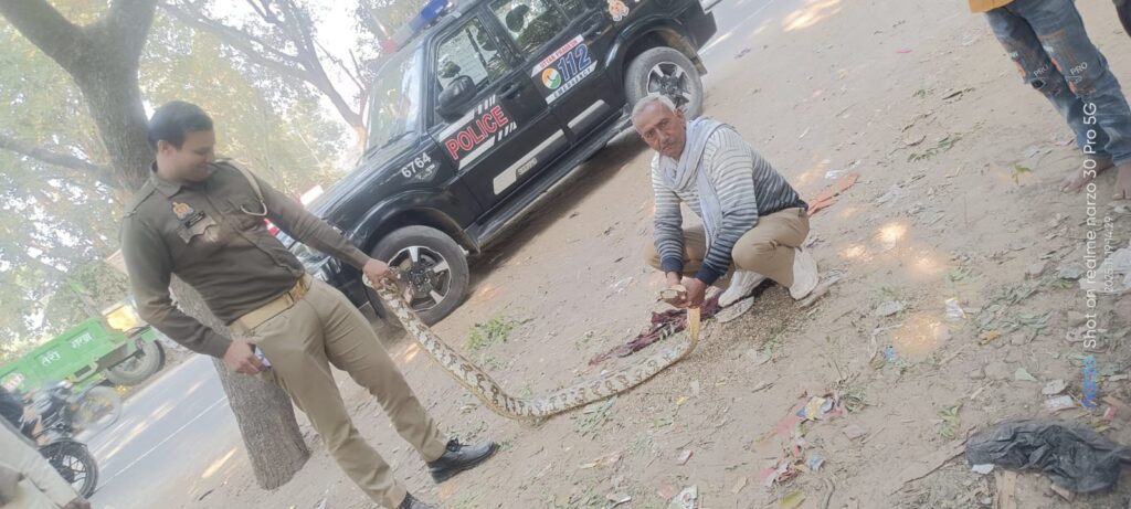 राहगीर नीरज कुमार ने सूझबूझ दिखाते हुए तत्काल डायल 112 पर सूचना दी। जानकारी मिलते ही पीआरवी 6764 की पुलिस टीम मौके पर पहुंची और लोगों को सुरक्षित दूरी पर हटाया। इसके बाद वन विभाग की टीम को बुलाया गया। पुलिस और वन विभाग के संयुक्त प्रयास से अजगर को सकुशल पकड़कर सुरक्षित स्थान पर छोड़ा गया।