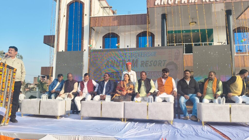 आयोजक अनुपम वर्मा एवं छोटेलाल कनौजिया ने मुख्य अतिथि का स्वागत पुष्पमाला और स्मृति चिन्ह भेंट कर किया। उद्घाटन समारोह को संबोधित करते हुए जिला पंचायत अध्यक्ष प्रेमावती ने कहा कि अनुपम रिसोर्ट के खुलने से ग्रामीण क्षेत्रों की जनता को अब आधुनिक सुविधाओं से युक्त समारोह स्थल आसानी से उपलब्ध हो सकेगा। शादी–विवाह और अन्य मांगलिक कार्यों के लिए अब दूर शहर नहीं जाना पड़ेगा, क्योंकि यहां शहर जैसी सभी आधुनिक सुविधाएं मौजूद होंगी।