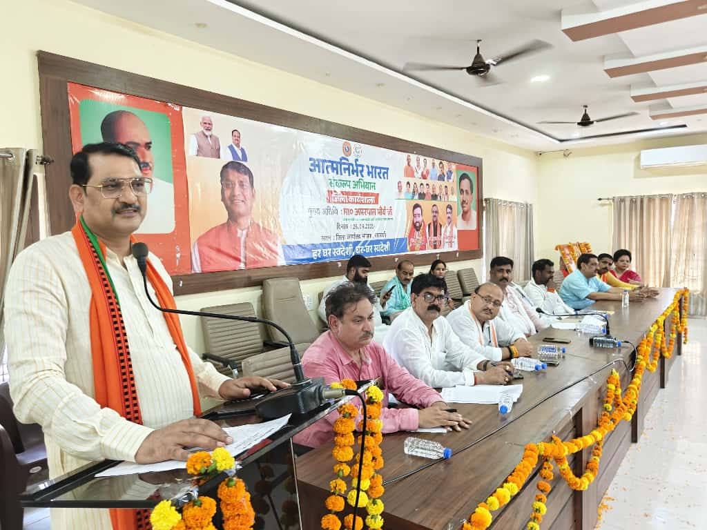 बाराबंकी।आत्मनिर्भर भारत – स्वदेशी संकल्प अभियान की जिला स्तरीय कार्यशाला शुक्रवार को भाजपा जिला कार्यालय पर आयोजित की गई। मुख्य अतिथि राज्यसभा सांसद अमरपाल मौर्य ने स्वदेशी उत्पादों को बढ़ावा देने और विदेशी मानसिकता को देश की सामाजिक व आर्थिक कमजोरियों का कारण बताने पर जोर दिया।