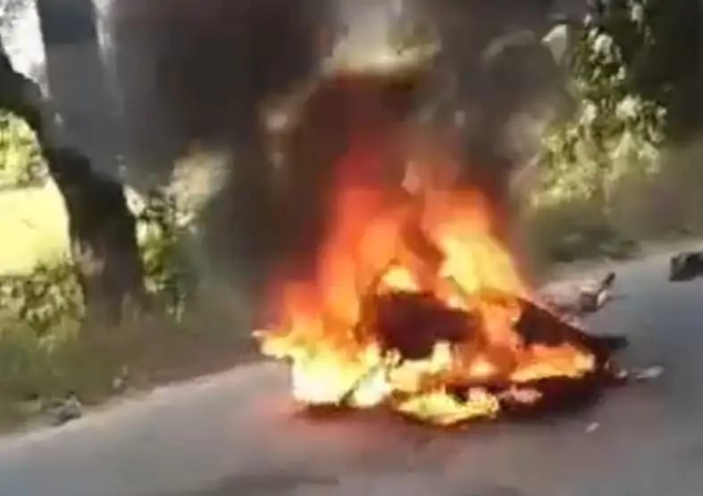 बहराइच। मटेरा थाना क्षेत्र में एक दर्दनाक सड़क हादसे ने इलाके को दहला दिया। मटेरा–नवाबगंज मार्ग के भौखारा गाँव के पास तेज रफ्तार महिंद्रा SUV ने सामने से आ रही बाइक को जोरदार टक्कर मार दी। टक्कर इतनी भीषण थी कि बाइक सवार युवक सड़क पर लगभग पाँच फीट दूर उछलकर गिर गया, जबकि बाइक आग की लपटों में घिरकर पूरी तरह जलकर राख हो गई।
