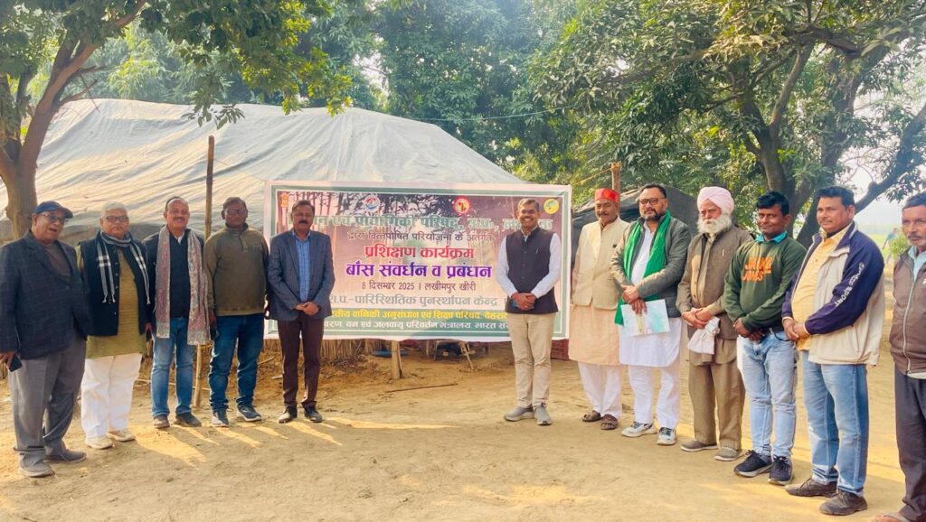 लखीमपुर खीरी के गोला गोकर्णनाथ क्षेत्र में बांस की व्यावसायिक खेती को बढ़ावा देने के उद्देश्य से एक दिवसीय प्रशिक्षण कार्यक्रम आयोजित किया गया। यह कार्यक्रम भा.वा.अ.शि.प.–पारिस्थितिक पुनर्स्थापन केन्द्र, प्रयागराज द्वारा विज्ञान एवं प्रौद्योगिकी परिषद, उत्तर प्रदेश द्वारा पोषित परियोजना के अंतर्गत बांकेगंज स्थित यदुनंदन सिंह पुजारी जी के पुजारी फ़ार्म पर सम्पन्न हुआ।