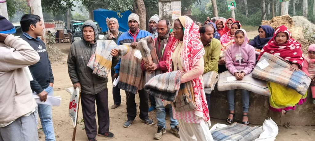 भीषण ठंड के बावजूद बड़ी संख्या में दिव्यांगजन गन्ना कार्यालय पहुंचे, जहां तहसीलदार एवं नायब तहसीलदार ने लेखपाल के साथ पहुंचकर उन्हें कंबल वितरित किए। कंबल प्राप्त करने वालों में रंजीता देवी, गीता देवी, अंशु कुमार, पवन कुमार, लज्जावती, चंपाकली, बबीता, चांदनी, शिवकुमार, सुमित कुमार, विजय कुमार, नीरज कुमार, अवधेश कुमार, सुनील कुमार सहित दो दर्जन से अधिक दिव्यांगजन शामिल रहे।