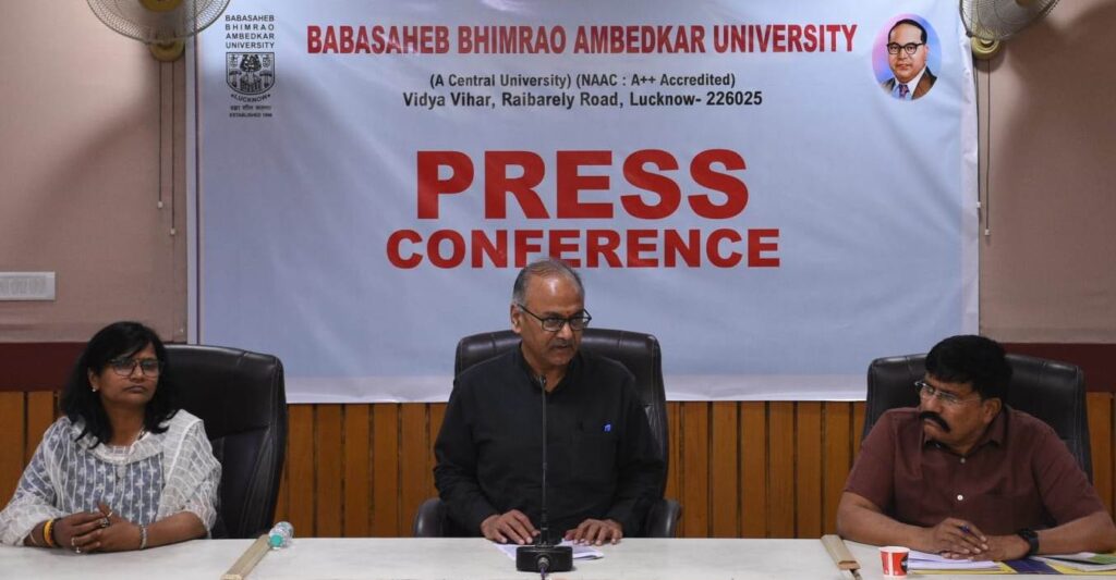 लखनऊ। राजधानी के बाबासाहेब भीमराव अम्बेडकर विश्वविद्यालय में शुक्रवार को आयोजित पत्रकारवार्ता में 11 से 14 अप्रैल 2026 तक होने वाले ‘भारतरत्न बाबासाहेब भीमराव अम्बेडकर जयंती’ एवं ‘विश्वविद्यालय स्थापना दिवस’ कार्यक्रमों की रूपरेखा साझा की गई। कुलपति प्रो. मित्तल ने बताया कि चार दिवसीय इस आयोजन में भारत के पूर्व राष्ट्रपति राम नाथ कोविंद मुख्य अतिथि के रूप में शामिल होंगे। उन्होंने कहा कि कार्यक्रम केवल औपचारिक न होकर विद्यार्थियों के समग्र विकास को ध्यान में रखकर तैयार किया गया है। इसमें राष्ट्रीय संगोष्ठियों, सांस्कृतिक गतिविधियों और विभिन्न प्रतियोगिताओं का आयोजन होगा।