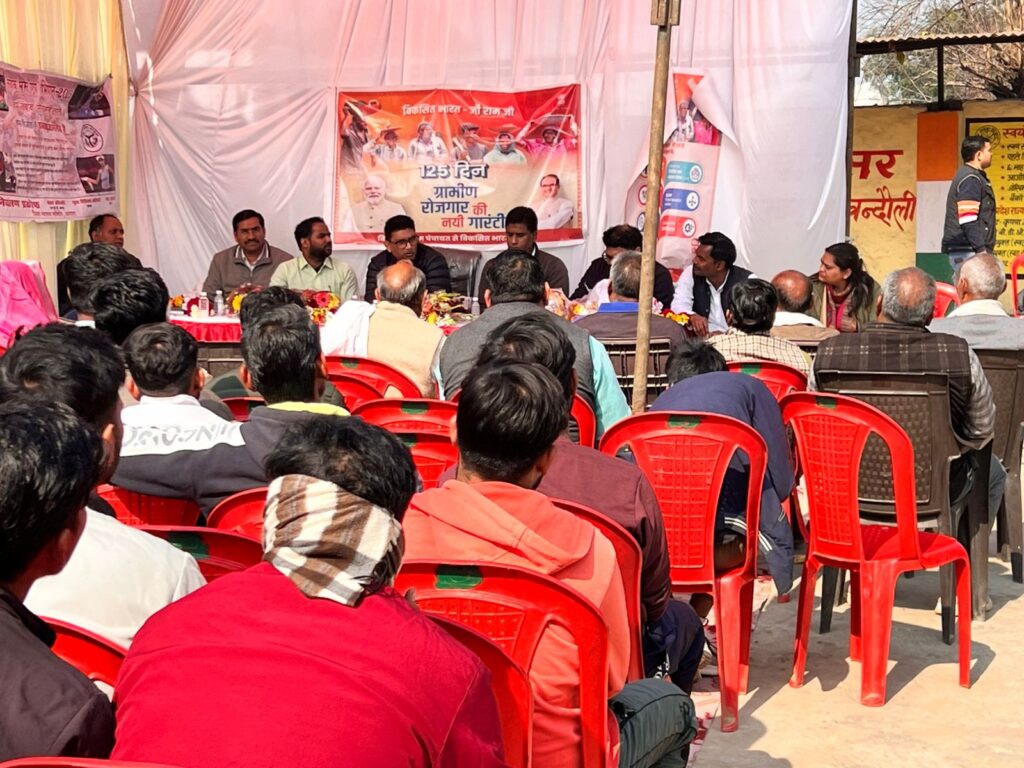 ग्रामीणों को योजना की जानकारी पम्पलेट, पोस्टर और होर्डिंग के माध्यम से भी दी गई। बैठक में रोजगार सेवक, ग्रामीण मजदूर, महिलाएं और किसान उत्साहपूर्वक शामिल हुए।