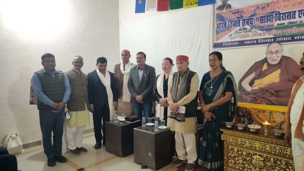 कसया, कुशीनगर।भारत तिब्बत संवाद मंच द्वारा तिब्बती मंदिर कुशीनगर प्रांगण में बौद्ध धर्मगुरु दलाई लामा के नोबल शांति पुरस्कार प्राप्त करने की 36वीं वर्षगांठ के अवसर पर ‘भारत–तिब्बत संबंध : साझा विरासत एवं साझा भविष्य’ विषय पर गोष्ठी का आयोजन किया गया।