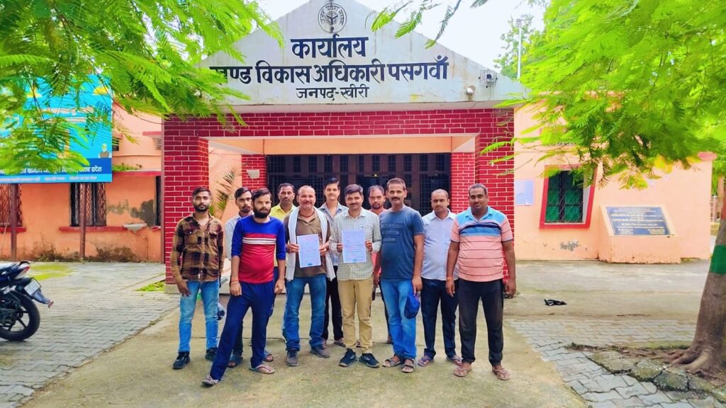 पसगवां/अजबापुर-खीरी। भारतीय किसान संघ उत्तर प्रदेश (अवध प्रांत) ने मंगलवार को प्रदेशव्यापी अभियान के तहत मुख्यमंत्री को संबोधित सात सूत्रीय ज्ञापन खंड विकास अधिकारियों को सौंपा। इसी क्रम में जिला महामंत्री उपेन्द्र पाण्डेय के नेतृत्व में पसगवां खंड विकास अधिकारी को ज्ञापन दिया गया।