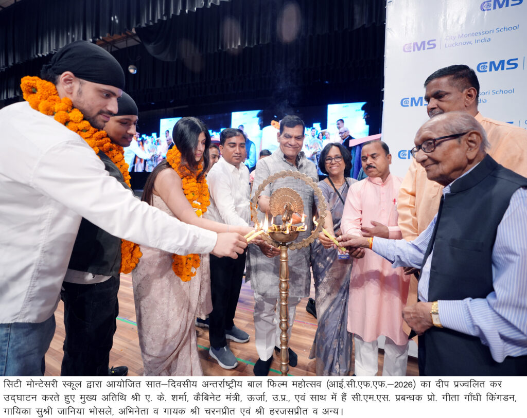 लखनऊ,। सिटी मॉन्टेसरी स्कूल (CMS) द्वारा आयोजित अंतरराष्ट्रीय बाल फिल्म महोत्सव (ICFF-2026) का भव्य शुभारंभ कानपुर रोड स्थित ऑडिटोरियम में हुआ। कार्यक्रम का उद्घाटन उत्तर प्रदेश के ऊर्जा मंत्री ए.के. शर्मा और प्रसिद्ध लोक गायिका मालिनी अवस्थी ने दीप प्रज्वलित कर किया। इस अवसर पर अभिनेता चरनप्रीत, हरजसप्रीत और गायिका जानिया भोसले भी मौजूद रहे।