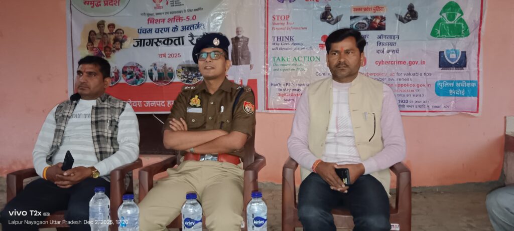 हरदोई/भरखनी-पचदेवरा। ग्रामीण क्षेत्रों में बढ़ते साइबर अपराध, महिला उत्पीड़न और अपराध रोकथाम को लेकर मंगलवार को सहायक पुलिस अधीक्षक आलोक राज नारायण ने विवियापुर मंदिर परिसर में चौपाल लगाई। इस दौरान उन्होंने बड़ी संख्या में उपस्थित ग्रामीणों को सुरक्षा से जुड़ी महत्वपूर्ण जानकारियाँ देकर जागरूक किया।