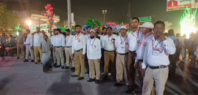 विशेष पुलिस अधिकारी (एसपीओ टीम) प्रभारी अभयराज सिंह, उप प्रभारी परवेज अहमद और जनसंपर्क अधिकारी शेख लियाकत अली के नेतृत्व में एसपीओ टीम के सदस्य पूरी रात सक्रिय रहे। उन्होंने पुलिस बल के साथ मिलकर भीड़ नियंत्रण, ट्रैफिक व्यवस्था और बच्चों की सुरक्षा में सहयोग किया।
