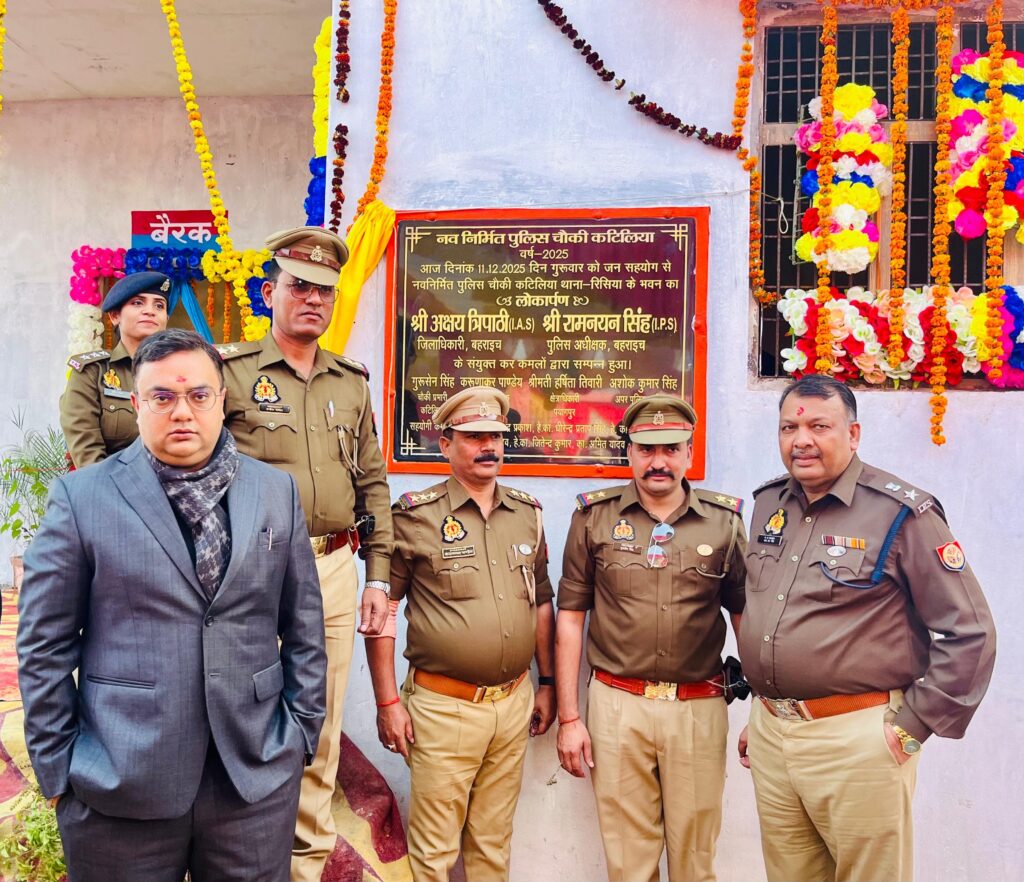 बहराइच। थाना रिसिया क्षेत्र के कटिलिया में जनसहयोग से निर्मित नई पुलिस चौकी का गुरुवार को जिलाधिकारी अक्षय त्रिपाठी और पुलिस अधीक्षक राम नयन सिंह ने विधि-विधान से पूजा-अर्चना कर लोकार्पण किया। स्थानीय छात्र ने फीता काटकर चौकी का शुभारंभ किया, जिसके बाद पूरे क्षेत्र में उत्साह और गर्व का माहौल बन गया।