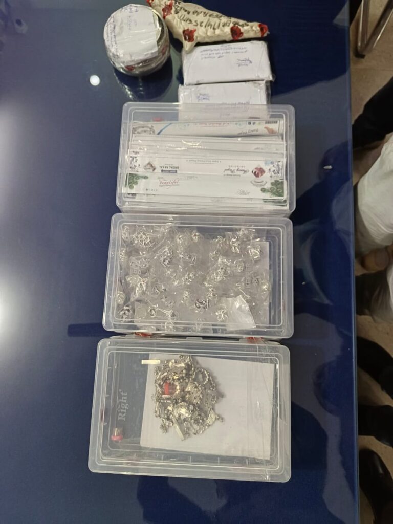 तलाशी में पुलिस को एक किलो 640 ग्राम चांदी (सफेद धातु), 160 ग्राम पीली धातु, पुराने चांदी के गहनों से भरा स्टील टिफिन, दो मोबाइल फोन, ₹320 नकद और 315 बोर का तमंचा बरामद हुआ। साथ ही घटना में प्रयुक्त बाइक भी जब्त की गई।