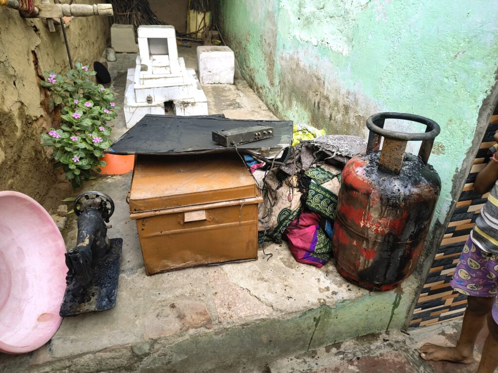 पड़ोसियों और परिवार की तत्परता से बड़ा हादसा टला, लेकिन आग से काफी नुकसान हुआ।