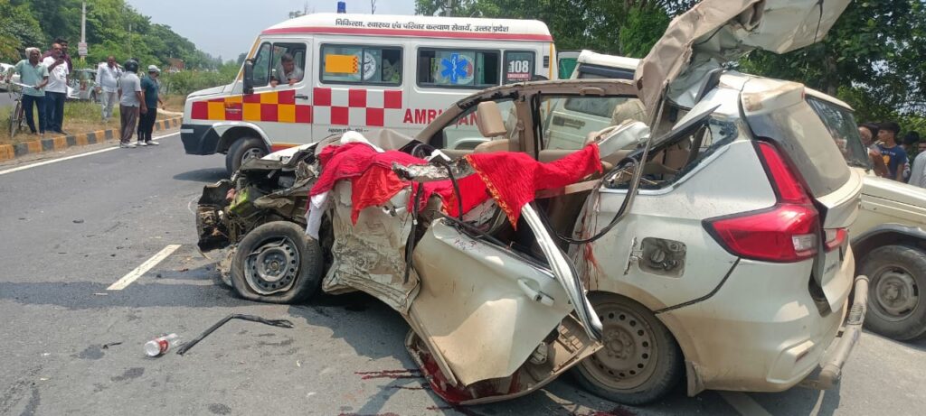 देवघर और थावे मंदिर से दर्शन कर लौट रहे श्रद्धालुओं की कार ट्रैक्टर से टकराई, चार की मौत, दो गंभीर घायल