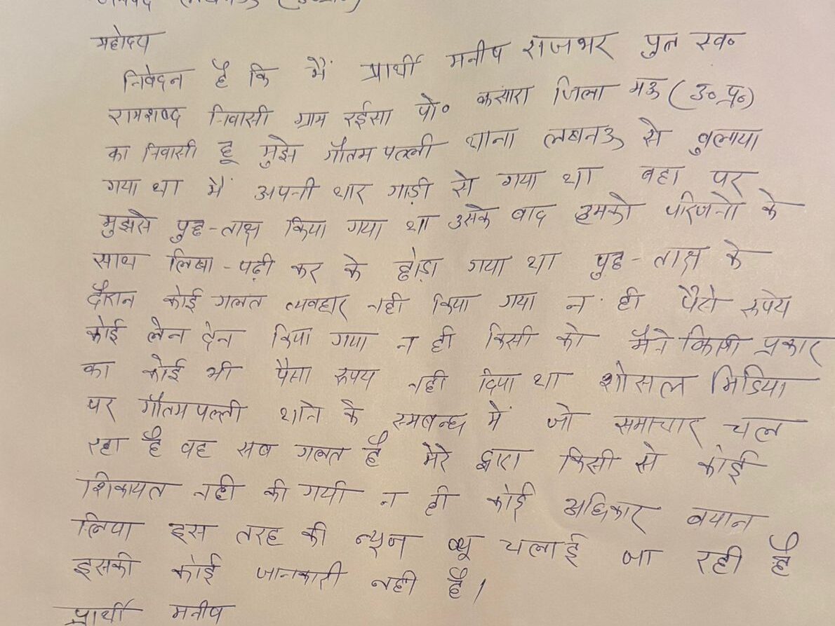जानकारी के अनुसार, जिस व्यक्ति को कथित रूप से रुपये देने वाला बताया गया था, उसने इन आरोपों को पूरी तरह निराधार बताया है। संबंधित व्यक्ति ने पुलिस कमिश्नर को पत्र लिखकर स्पष्ट किया है कि उसके साथ न तो किसी प्रकार का दुर्व्यवहार हुआ और न ही किसी तरह का कोई लेनदेन किया गया। साथ ही उसने यह भी कहा कि उसने किसी के खिलाफ कोई शिकायत दर्ज नहीं कराई है।
