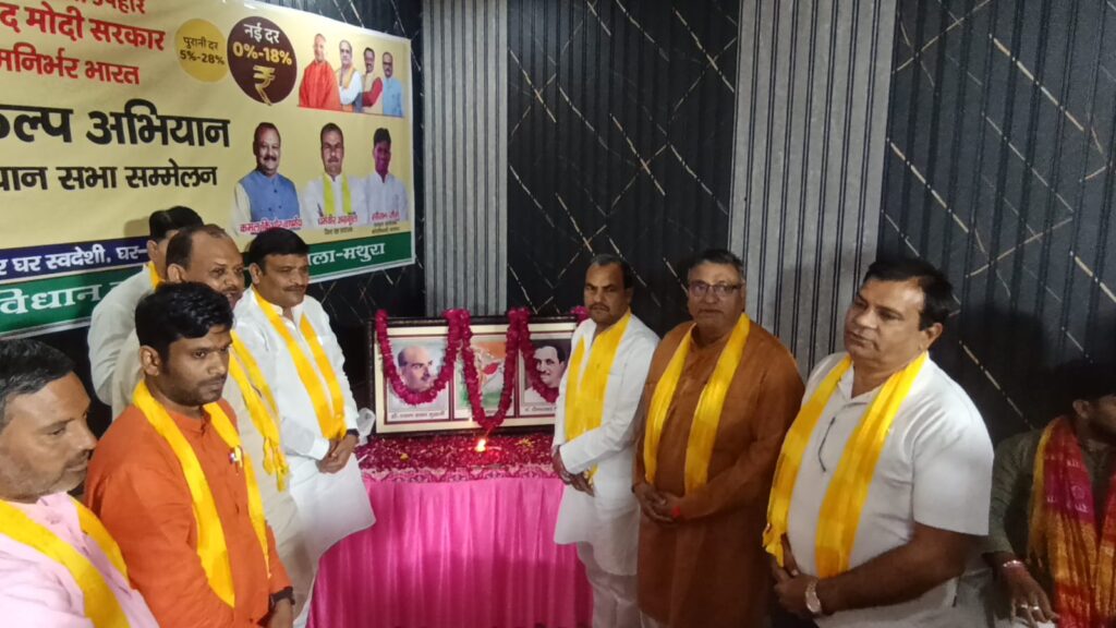 कोसीकलां। सरायशाही स्थित अग्रवाल धर्मशाला में भाजपा विधानसभा छाता द्वारा “घटी जीएसटी, मिला उपहार — धन्यवाद मोदी सरकार” सम्मेलन का आयोजन किया गया। सम्मेलन में वक्ताओं ने कहा कि जीएसटी दरों में की गई कटौती सिर्फ राहत नहीं बल्कि मोदी सरकार द्वारा आम जनमानस को दिया गया आर्थिक उपहार है।