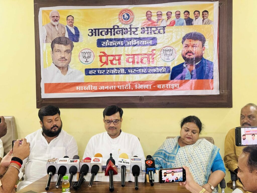 बहराइच। प्रधानमंत्री नरेंद्र मोदी के आत्मनिर्भर भारत संकल्प को सशक्त बनाने के उद्देश्य से भाजपा जिला कार्यालय, बहराइच में “हर घर स्वदेशी – घर-घर स्वदेशी” अभियान के तहत जीएसटी विधानसभा सम्मेलन का आयोजन किया गया।