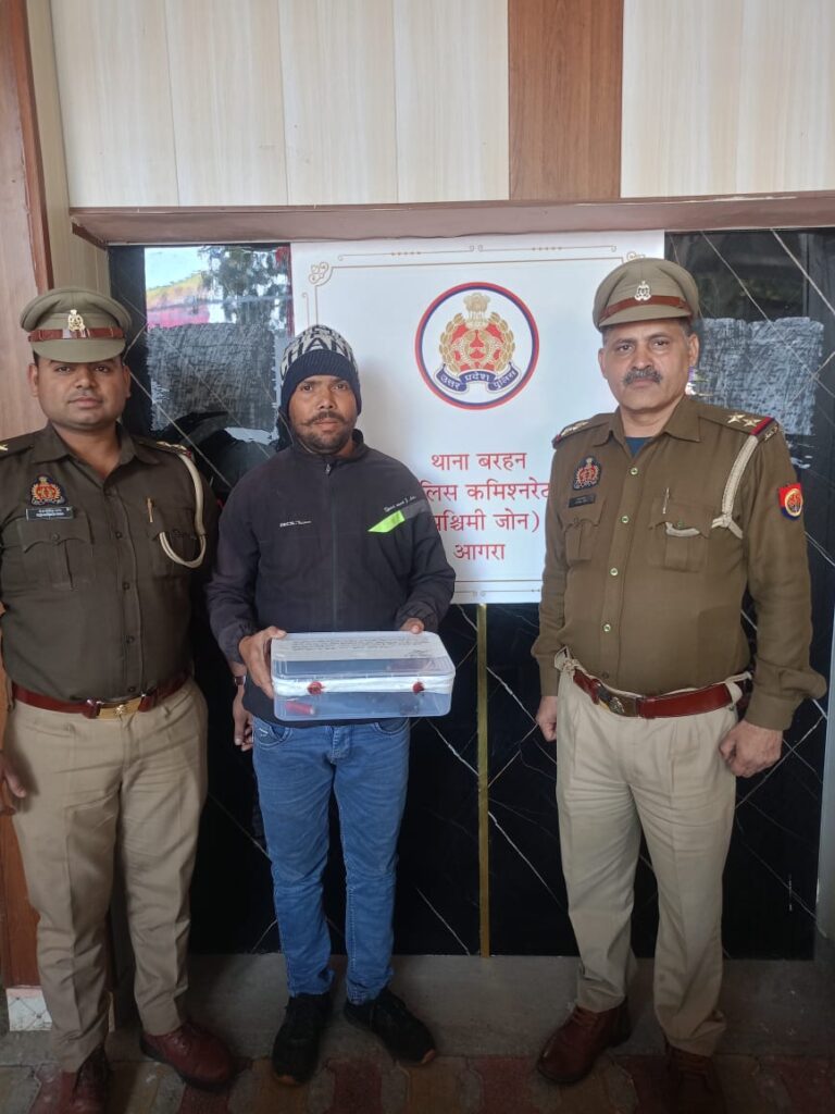 घटना के बाद पीड़ित विवेक कुमार ने बरहन थाने में शिकायत दर्ज कराई। थानाध्यक्ष आशुतोष रघुवंशी ने बताया कि आरोपी सुनील उर्फ काका को तमंचे सहित गिरफ्तार कर लिया गया है और उसके खिलाफ वैधानिक कार्रवाई जारी है।