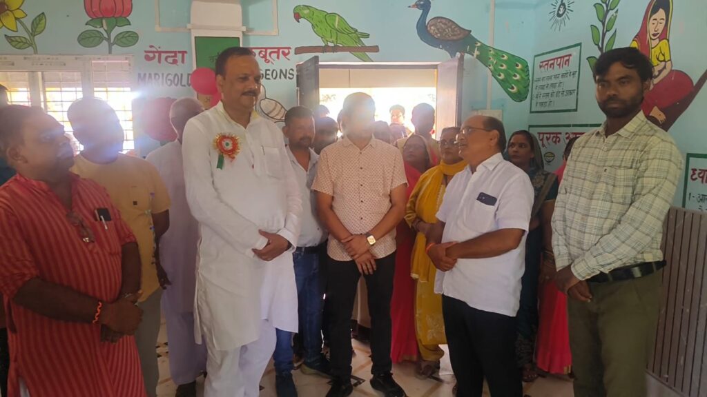 मुंडेर सवायजपुर/भरखनी ब्लाक क्षेत्र के नवनिर्मित स्मार्ट आंगनबाड़ी केंद्र का फीता काटकर विधायक माधवेन्द्र प्रताप सिंह रानू ने गुरुवार को लोकार्पण किया। विधायक ने सरकार की योजनाओं के बारे में लोगों को जानकारी भी दी।विधायक माधवेन्द्र प्रताप सिंह रानू ने कहा कि केंद्र व प्रदेश सरकार आंगनबाड़ी केंद्र के माध्यम से भी शिक्षा का उजाला कर रही है। गांव का कोई भी बच्चा ऐसा ना हो जो शिक्षा से वंचित रहे। इसके लिए सरकार गांव में आंगनबाड़ी केंद्र का निर्माण कराकर आंगनबाड़ी केंद्र के माध्यम से गुणवत्तापूर्ण प्रारंभिक शिक्षा पहुंचाने का कार्य कर रही है। सरकार का उद्देश्य है कि बच्चों का देखभाल भी पोषाहार के माध्यम से हो रहा है। योजनाएं बच्चों व गर्भवती महिलाओं को मिले इसके लिए प्रत्येक माह पौष्टिक आहार भी वितरण करती है। आंगनबाड़ी केंद्र में प्रारंभिक बाल्यावस्था देखभाल और शिक्षा तक पहुंच में सुधार हो, इसके लिए प्रयास भी कर रही है। प्रधान प्रतिनिधि पंकज शुक्ला ने प्रदेश सरकार के योजनाओं के बारे में विस्तार रूप से जानकारी दी। ब्लॉक भरखनी के वीडियो अशोक दुबे ने आंगनबाड़ी केंद्र की संचालित योजनाओं के बारे में लोगों को अवगत कराया। इस खास मौके पर विधायक माधवेन्द्र प्रताप सिंह रानू ने रोहिणी को खीर खिलाकर मन्नप्राशन भी किया इस मौके पर विधायक माधवेन्द्र प्रताप सिंह रानू के साथ वीडियो भरखनी अशोक दुबे,सचिव सोमेंद्र प्रताप सिंह,भाजपा मंडल अध्यक्ष राकेश रंजन,पूर्व मंडल अध्यक्ष शिवम तिवारी,हरिहर शरण शुक्ला,प्रधान प्रतिनिधि पंकज शुक्ला,भाजपा नेता रामप्रताप सिंह,कमलेश शुक्ला, चीपू नेता,आदि लोग प्रमुख रूप से मौजूद रहे