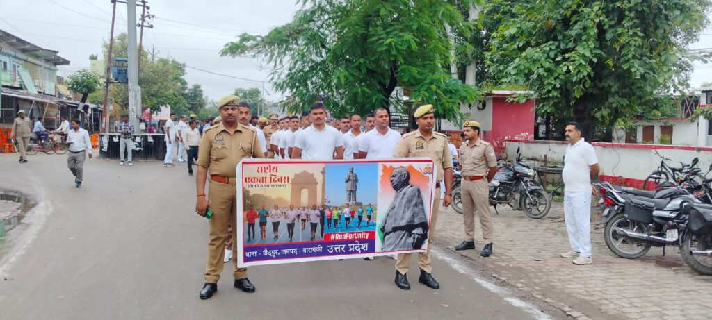 जैदपुर (बाराबंकी)। राष्ट्रीय एकता दिवस के अवसर पर शुक्रवार सुबह जैदपुर कोतवाली में ‘रन फॉर यूनिटी’ कार्यक्रम का आयोजन बड़े उत्साह के साथ किया गया। यह दौड़ सुबह 7 बजे थाना चौराहा से प्रारंभ हुई, जिसका शुभारंभ जैदपुर कोतवाल संतोष कुमार सिंह और पद्मश्री राम सरन वर्मा ने संयुक्त रूप से हरी झंडी दिखाकर किया।