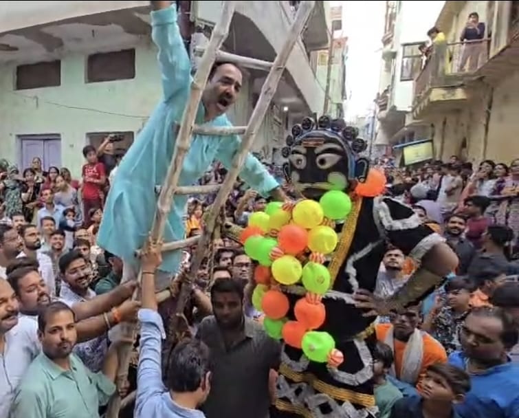 जसवंतनगर/इटावा। चारों वेदों का ज्ञाता और अत्याचार का प्रतीक रावण, जसवंतनगर के रामलीला मैदान में पंचक लग्न के दौरान मर्यादा पुरुषोत्तम भगवान राम के हाथों पराजित हुआ। रावण के विशाल पुतले को तोड़कर उसकी अस्थियां दर्शकों ने लूट ली। खास बात यह रही कि यहाँ के लोग रावण का पुतला दहन नहीं करते; जगह-जगह रावण और राम की आरती उतारी जाती है।