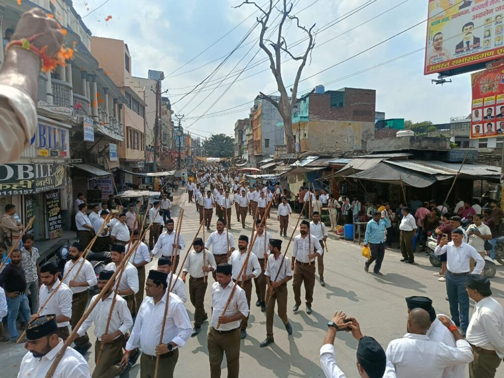 कासगंज। राष्ट्रीय स्वयंसेवक संघ ने स्थापना के 100 वर्ष पूर्ण होने पर विजयदशमी के अवसर पर भव्य पथ संचलन निकाला। प्रभुपार्क मैदान से प्रारंभ हुए इस कार्यक्रम में स्वयंसेवकों ने अनुशासन और शक्ति का प्रदर्शन करते हुए नगर का भ्रमण किया। संचलन के उपरांत प्रभुपार्क मैदान में शस्त्र पूजन किया गया और हिंदू समाज से संगठित होने की अपील की गई।