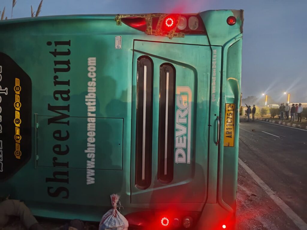 किरावली में स्लीपर बस पलटने से एक की मौत, 45 गंभीर रूप से घायल