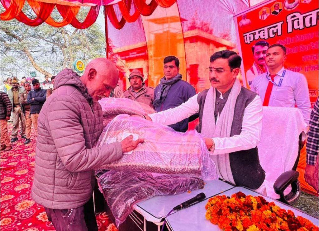 माधोगंज, हरदोई। उत्तर प्रदेश के मुख्यमंत्री योगी आदित्यनाथ के प्रेरणा एवं मार्गदर्शन में नगर पंचायत कुरसठ में कंबल वितरण कार्यक्रम का आयोजन किया गया। शीतलहर के प्रकोप को देखते हुए इस कार्यक्रम के तहत गरीब, असहाय एवं जरूरतमंद लोगों को कंबल वितरित कर ठंड से राहत पहुंचाई गई। कार्यक्रम का मुख्य उद्देश्य ठंड के मौसम में कमजोर वर्गों की सहायता करना और सरकार की जनकल्याणकारी योजनाओं को जमीनी स्तर तक प्रभावी ढंग से पहुंचाना रहा। इस अवसर पर वक्ताओं ने कहा कि गरीब एवं वंचित वर्ग के जीवन में सकारात्मक बदलाव लाना प्रदेश सरकार की सर्वोच्च प्राथमिकताओं में शामिल है तथा समाज के अंतिम पायदान पर खड़े व्यक्ति तक सहायता पहुंचाने के लिए सरकार निरंतर प्रतिबद्धता के साथ कार्य कर रही है। कंबल प्राप्त कर जरूरतमंदों के चेहरों पर संतोष और राहत स्पष्ट दिखाई दी। कार्यक्रम में विमलेश कुमार बबलू (चेयरमैन प्रतिनिधि), रमेश वर्मा (ब्लॉक प्रमुख प्रतिनिधि), अखिलेश कुमार, संदीप कुमार, अनमोल रत्न, पुष्पा देवी, प्रीति देवी, सरला देवी, राम देवी सहित सभी सम्मानित सभासद और बड़ी संख्या में नगरवासी उपस्थित रहे।