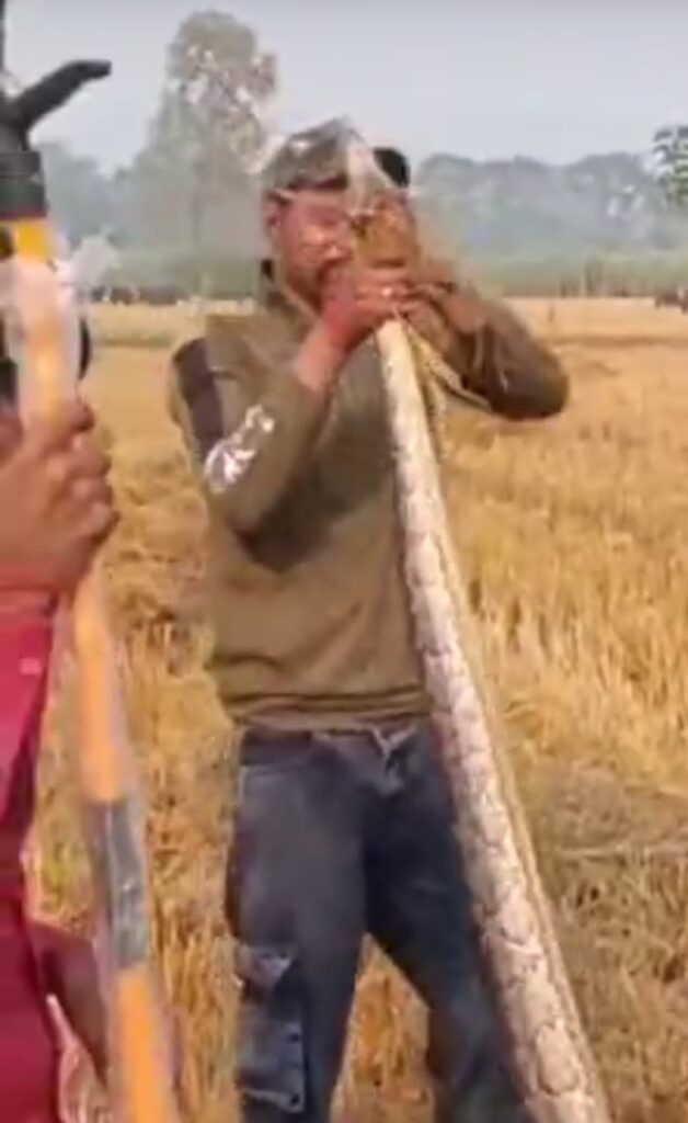 लखीमपुर खीरी। दक्षिण निघासन वन रेंज लुधौरी क्षेत्र के बिरजापुरवा गांव में उस समय अफरा-तफरी मच गई जब एक खेत में विशालकाय अजगर दिखाई दिया। ग्रामीण योगेश दीक्षित (मोनू) के खेत में काम कर रहे मजदूरों ने जब अजगर को देखा तो घबराकर शोर मचा दिया। देखते ही देखते मौके पर ग्रामीणों की भारी भीड़ जमा हो गई।