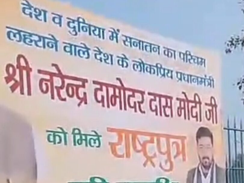 होर्डिंग्स में प्रधानमंत्री नरेंद्र मोदी को देश और दुनिया में सनातन संस्कृति का परचम लहराने वाला, मजबूत और लोकप्रिय वैश्विक नेता बताया गया है। पोस्टरों में स्पष्ट रूप से लिखा गया है कि श्री नरेंद्र मोदी जी ने भारत को अंतरराष्ट्रीय स्तर पर नई पहचान दिलाई है, ऐसे में उनके योगदान को देखते हुए उन्हें ‘राष्ट्रपुत्र’ जैसी विशेष उपाधि दी जानी चाहिए।