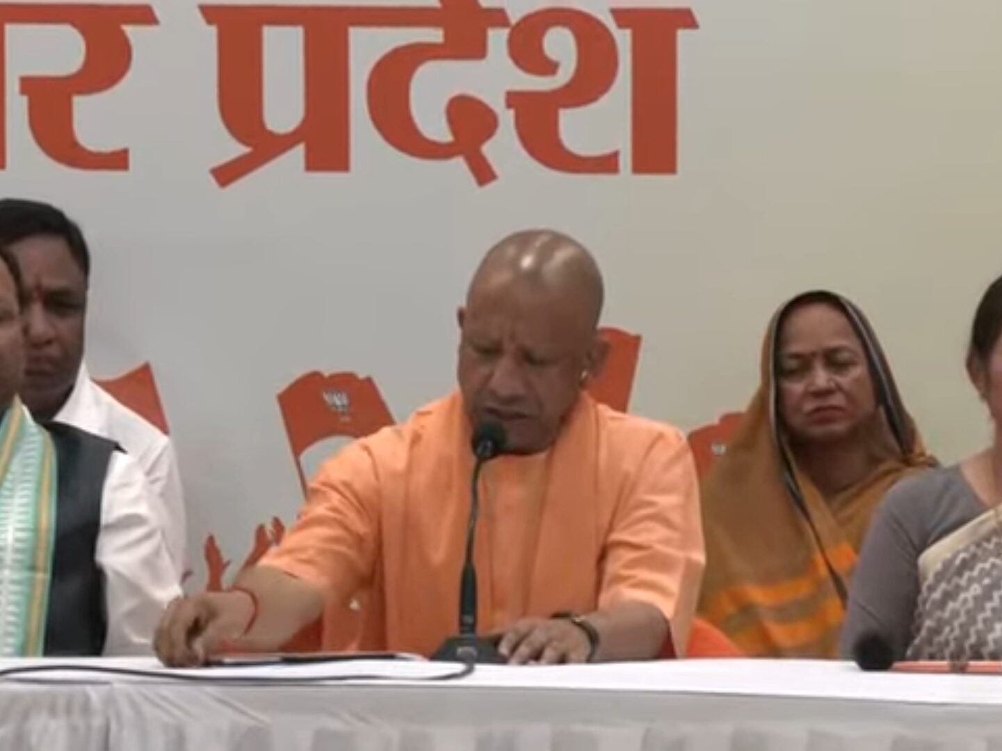 प्रेस वार्ता को संबोधित करते हुए मुख्यमंत्री योगी आदित्यनाथ ने कहा कि यह संवाद विशेष रूप से संसद में इंडी गठबंधन के रवैये और नारी शक्ति वंदन अधिनियम पर देशभर में मिल रही प्रतिक्रियाओं को लेकर आयोजित किया गया है। उन्होंने दावा किया कि विपक्ष के “नारी विरोधी आचरण” के कारण देश की आधी आबादी में गहरा आक्रोश व्याप्त है। उन्होंने आरोप लगाया कि भारतीय राष्ट्रीय कांग्रेस और उसके सहयोगी दल—समाजवादी पार्टी, राष्ट्रीय जनता दल, तृणमूल कांग्रेस और डीएमके—ने मिलकर इस ऐतिहासिक विधेयक को बाधित करने की कोशिश की और संसद में अनुचित व्यवहार किया।
