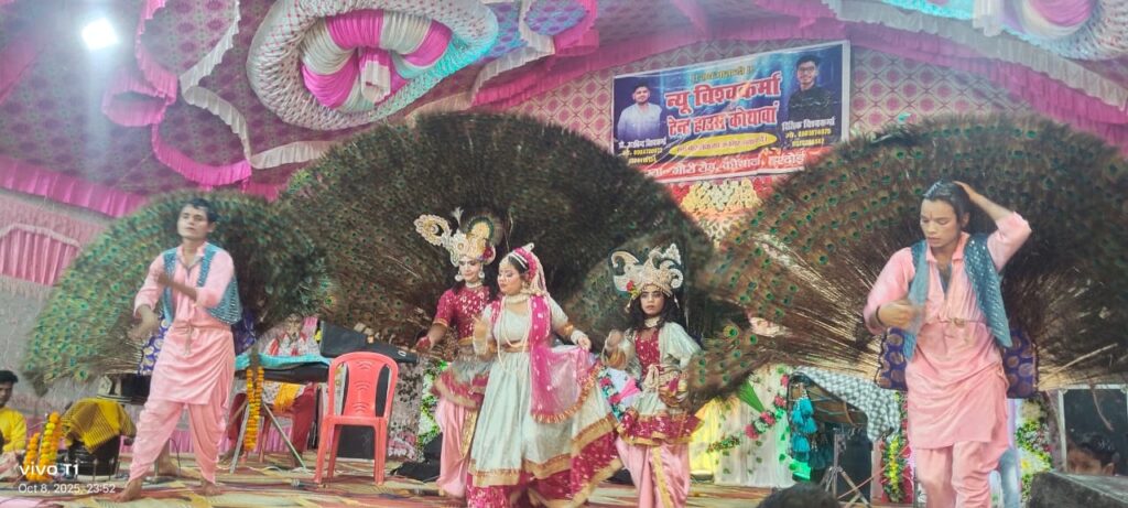 कानपुर से आए शनि सरताज म्यूजिकल ग्रुप एंड जागरण पार्टी के कलाकारों ने माँ भगवती के भजनों और झांकियों से वातावरण को भक्तिमय बना दिया।
