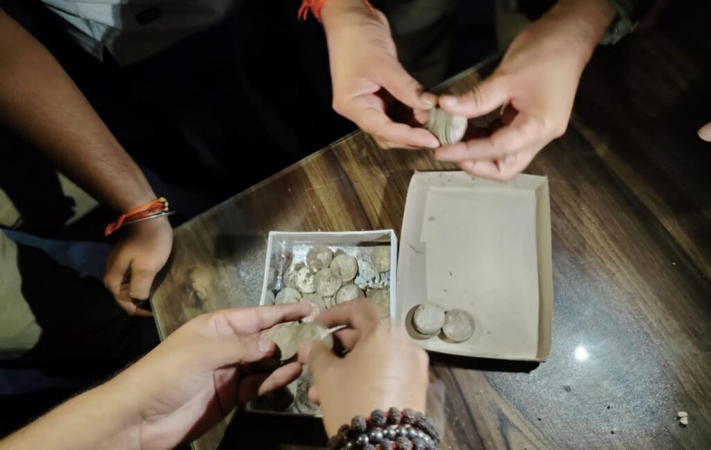 पुलिस मौके पर पहुंची और मलबा भर रहे मजदूरों की तलाशी ली, जिसमें उनकी जेब से करीब 75 चांदी के सिक्के बरामद हुए। ये सिक्के महारानी विक्टोरिया और जॉर्ज पंचम के शासनकाल के बताए जा रहे हैं।