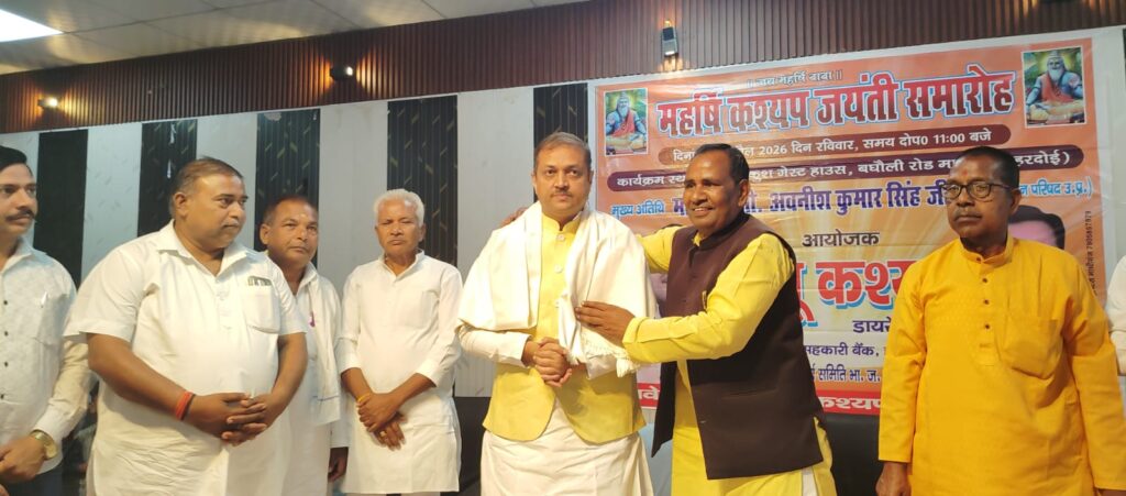 माधौगंज, हरदोई। कस्बे के एक गेस्ट हाउस में रविवार को महर्षि कश्यप जयंती समारोह बड़े ही हर्षोल्लास और भव्यता के साथ आयोजित किया गया। कार्यक्रम में क्षेत्र के गणमान्य लोगों की उपस्थिति ने आयोजन को विशेष बना दिया।