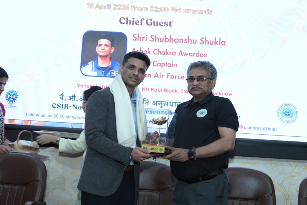 लखनऊ, 16 अप्रैल 2026। सीएसआईआर–राष्ट्रीय वनस्पति अनुसंधान संस्थान (एनबीआरआई), लखनऊ में आयोजित दो दिवसीय ग्रीष्मकालीन पादप विज्ञान महोत्सव (एसपीएसएफ) का गुरुवार को सफलतापूर्वक समापन हो गया। समापन समारोह के मुख्य अतिथि अशोक चक्र से सम्मानित ग्रुप कैप्टन एवं भारतीय वायु सेना के अधिकारी शुभांशु शुक्ला रहे।समारोह के दौरान संस्थान के शोधार्थियों ने महोत्सव की विस्तृत रिपोर्ट प्रस्तुत की। इस विज्ञान महोत्सव में डिजिटल फोटोग्राफी, मौखिक व्याख्यान और पोस्टर प्रस्तुति जैसी विभिन्न प्रतियोगिताएं आयोजित की गईं, जिनमें करीब 200 शोधार्थियों ने उत्साहपूर्वक भाग लिया।इससे पहले संस्थान के निदेशक डॉ. अजित कुमार शासनी ने अतिथियों का स्वागत करते हुए कहा कि शोधार्थी किसी भी अनुसंधान संस्थान की रीढ़ होते हैं और उनके शोध कार्य देश की प्रगति में महत्वपूर्ण भूमिका निभाते हैं। उन्होंने युवाओं को नवाचार और परिवर्तनकारी अनुसंधान के लिए प्रेरित किया।मुख्य अतिथि शुभांशु शुक्ला ने विजेताओं को पुरस्कृत करते हुए अपने संबोधन में अंतरिक्ष से पृथ्वी के अद्भुत सौंदर्य का उल्लेख किया और कहा कि हमें अपने ग्रह के महत्व को समझना चाहिए। उन्होंने विज्ञान और अनुसंधान को मानव समाज की समस्याओं के समाधान से जोड़ने पर जोर देते हुए माइक्रोग्रेविटी में हो रहे प्रयोगों की जानकारी साझा की।उन्होंने अंतरराष्ट्रीय अंतरिक्ष स्टेशन की अपनी यात्रा के अनुभव बताते हुए सूक्ष्म शैवालों पर किए गए प्रयोगों और अंतरिक्ष में गुरुत्वाकर्षण की कमी के प्रभावों पर प्रकाश डाला। युवाओं में वैज्ञानिक दृष्टिकोण विकसित करने की आवश्यकता पर बल देते हुए उन्होंने कहा कि विज्ञान को रोचक बनाना समय की जरूरत है, जिससे नई पीढ़ी की इसमें रुचि बढ़े।उन्होंने अपने संदेश में कहा कि भारत को नई ऊंचाइयों तक ले जाने के लिए सपनों को भी उतनी ही ऊंचाई देनी होगी और अपने प्रसिद्ध संदेश को दोहराया—“आसमान की कोई सीमा नहीं होनी चाहिए, न मेरे लिए, न तुम्हारे लिए और न ही भारत के लिए।”इससे पूर्व प्रातःकाल में संस्थान के वनस्पति उद्यान स्थित सेंट्रल लॉन में शोधार्थियों के मानसिक स्वास्थ्य और एकाग्रता को बढ़ाने के लिए ध्यान सत्र आयोजित किया गया। इस सत्र का संचालन लखनऊ के कम्प्लीट क्योर हीलिंग एंड मेडिटेशन इंस्टीट्यूट के रजनीश मिश्रा ने किया, जिसमें प्रतिभागियों को माइंडफुलनेस और ध्यान की विभिन्न तकनीकों का अभ्यास कराया गया।