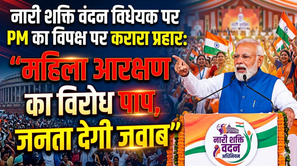 प्रधानमंत्री ने कहा कि महिला आरक्षण विधेयक का विरोध कर विपक्ष ने “पाप” किया है और इसकी सजा उन्हें जनता जरूर देगी। उन्होंने आरोप लगाया कि यह कदम संविधान निर्माताओं की भावनाओं का भी अपमान है और देश की महिलाएं इसे भली-भांति समझ चुकी हैं।