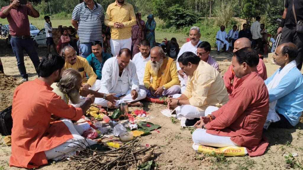 भूमि पूजन कालिका देवी मंदिर के पुजारी आचार्य अनुज शुक्ला और राम बली तिवारी द्वारा विधि-विधानपूर्वक कराया गया।