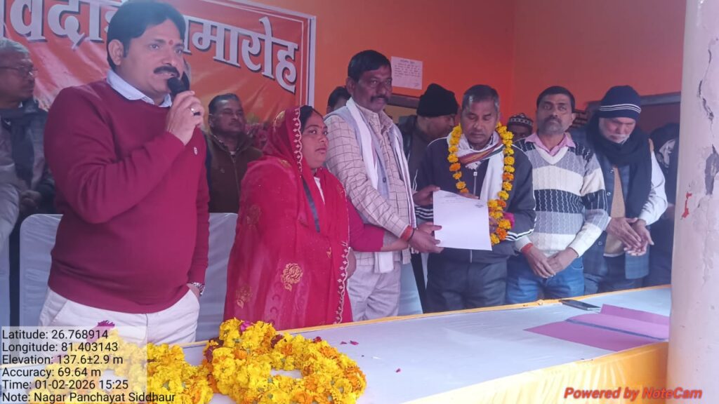 सिद्धौर, बाराबंकी। नगर पंचायत सिद्धौर में शुक्रवार को चतुर्थ श्रेणी कर्मचारी रामसागर के 31 दिसंबर को सेवानिवृत्त होने के अवसर पर विदाई सम्मान समारोह का आयोजन किया गया। समारोह नगर पंचायत अध्यक्ष रमन्ता रावत की उपस्थिति में संपन्न हुआ, जहां सेवानिवृत्त कर्मचारी को पुष्पगुच्छ, अंगवस्त्र एवं प्रतीक चिन्ह भेंट कर सम्मानित किया गया।
