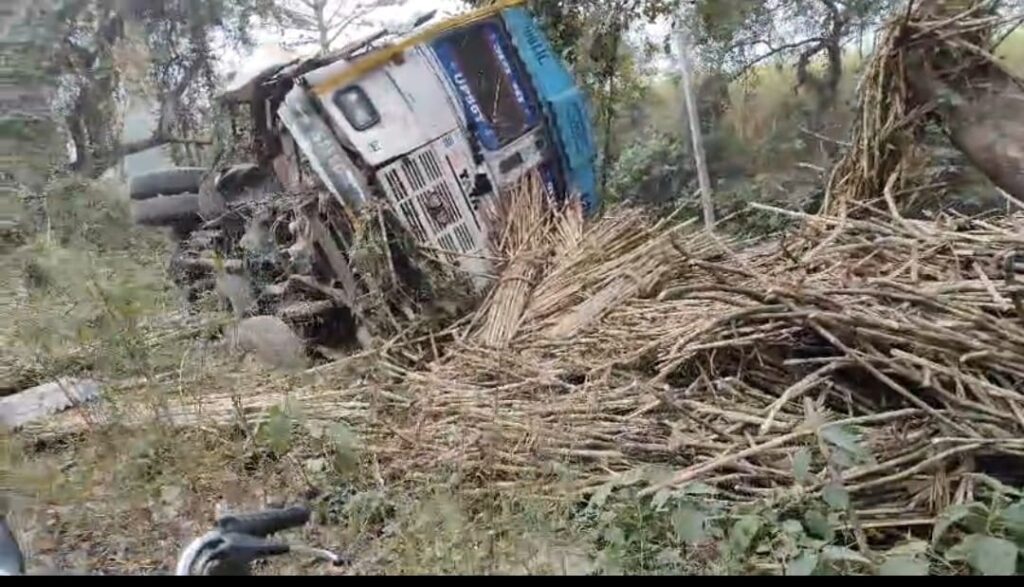 सिंगाही-खीरी। सिंगाही–निघासन नेशनल हाईवे पर शनिवार को उस समय अफरा-तफरी मच गई, जब गन्ने से भरा एक ओवरलोड ट्रक अनियंत्रित होकर सड़क किनारे पलट गया। हादसा अयोध्यापुरवा मार्ग पर स्थित धालीवाल शुगर क्रेशर के पास हुआ। गनीमत रही कि इस दुर्घटना में कोई जनहानि नहीं हुई और ट्रक में सवार सभी लोग सुरक्षित बाहर निकल आए।