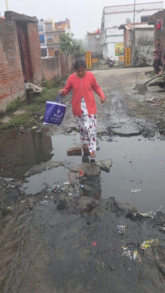स्थानीय लोगों ने बताया कि बच्चों को मजबूरी में टूटी सड़क और ईंटों पर चलकर स्कूल पहुंचना पड़ता है। कई बार छात्र फिसलकर गिर चुके हैं। बरसात के मौसम में यह रास्ता पूरी तरह तालाब में बदल जाता है, जिससे स्कूल जाना लगभग असंभव हो जाता है।