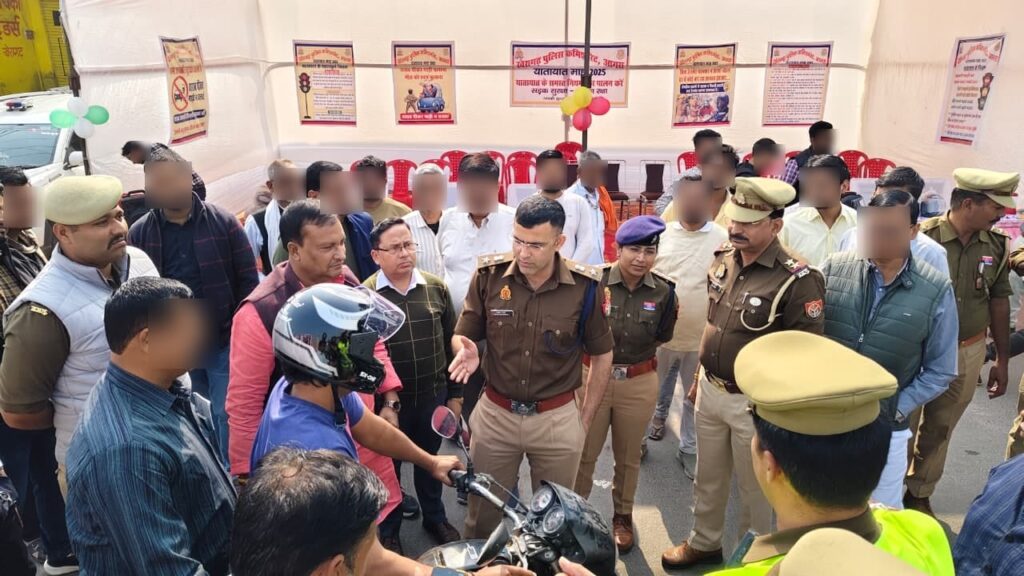 खेरागढ़। सोमवार को ‘यातायात माह-2025’ के तहत थाना खेरागढ़ क्षेत्र के सैंया तिराहे पर सड़क सुरक्षा जागरूकता अभियान की शुरुआत की गई। डीसीपी पश्चिमी अतुल शर्मा, एसीपी खेरागढ़ प्रीता दुबे तथा नगर पंचायत चेयरमैन सुधीर गर्ग गुड्डू ने संयुक्त रूप से कार्यक्रम का शुभारंभ किया।