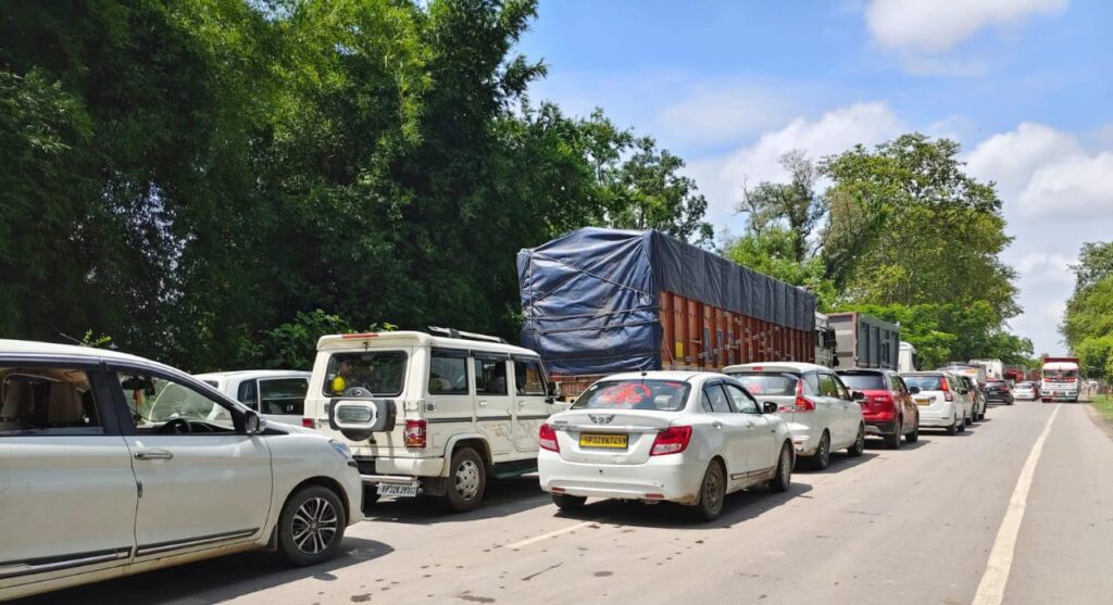 हादसे में डंपर चालक घायल हो गया जबकि दोनों वाहनों के अगले हिस्से बुरी तरह क्षतिग्रस्त हो गए। टक्कर के बाद ट्रक पर लदी आलू की बोरियां सड़क पर फैल गईं, जिससे रास्ता पूरी तरह जाम हो गया।