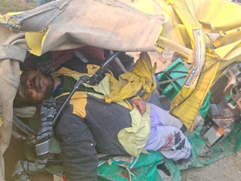 उन्नाव।जनपद उन्नाव के अजगैन थाना क्षेत्र में एक दर्दनाक सड़क हादसा हो गया। गांव मकूर स्थित इंडियन ऑयल पेट्रोल पंप के पास ट्रक और ऑटो की आमने-सामने टक्कर में तीन लोगों की मौके पर ही मौत हो गई, जबकि चार लोग गंभीर रूप से घायल हो गए। टक्कर इतनी तेज थी कि ऑटो के परखच्चे उड़ गए और कई सवारियां उछलकर सड़क पर गिर पड़ीं।